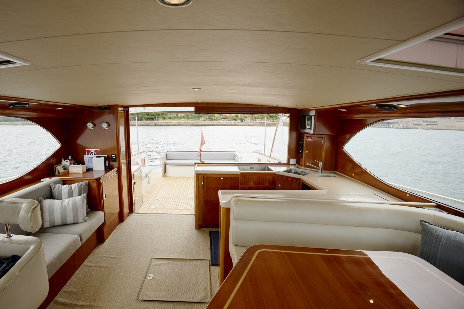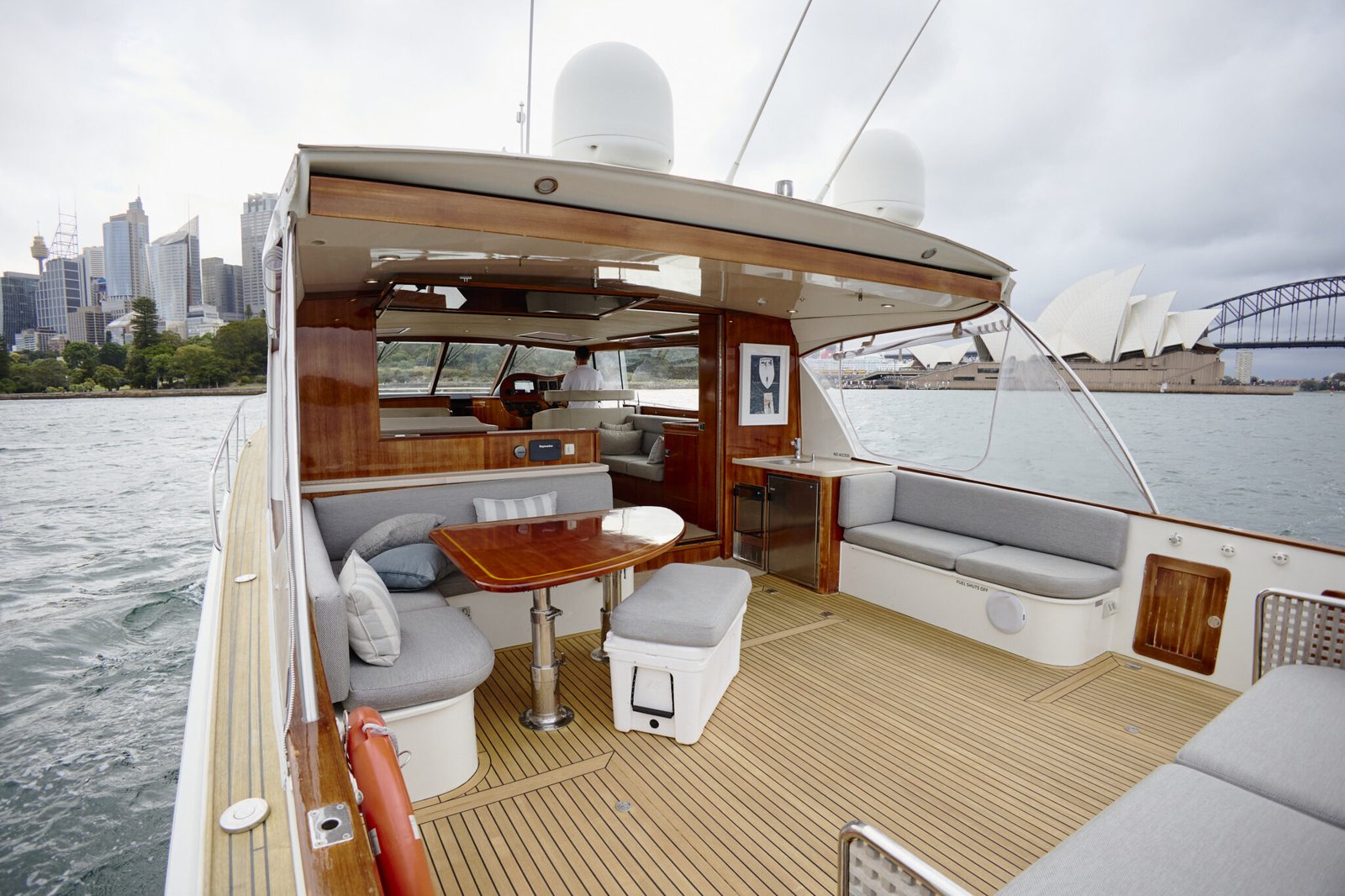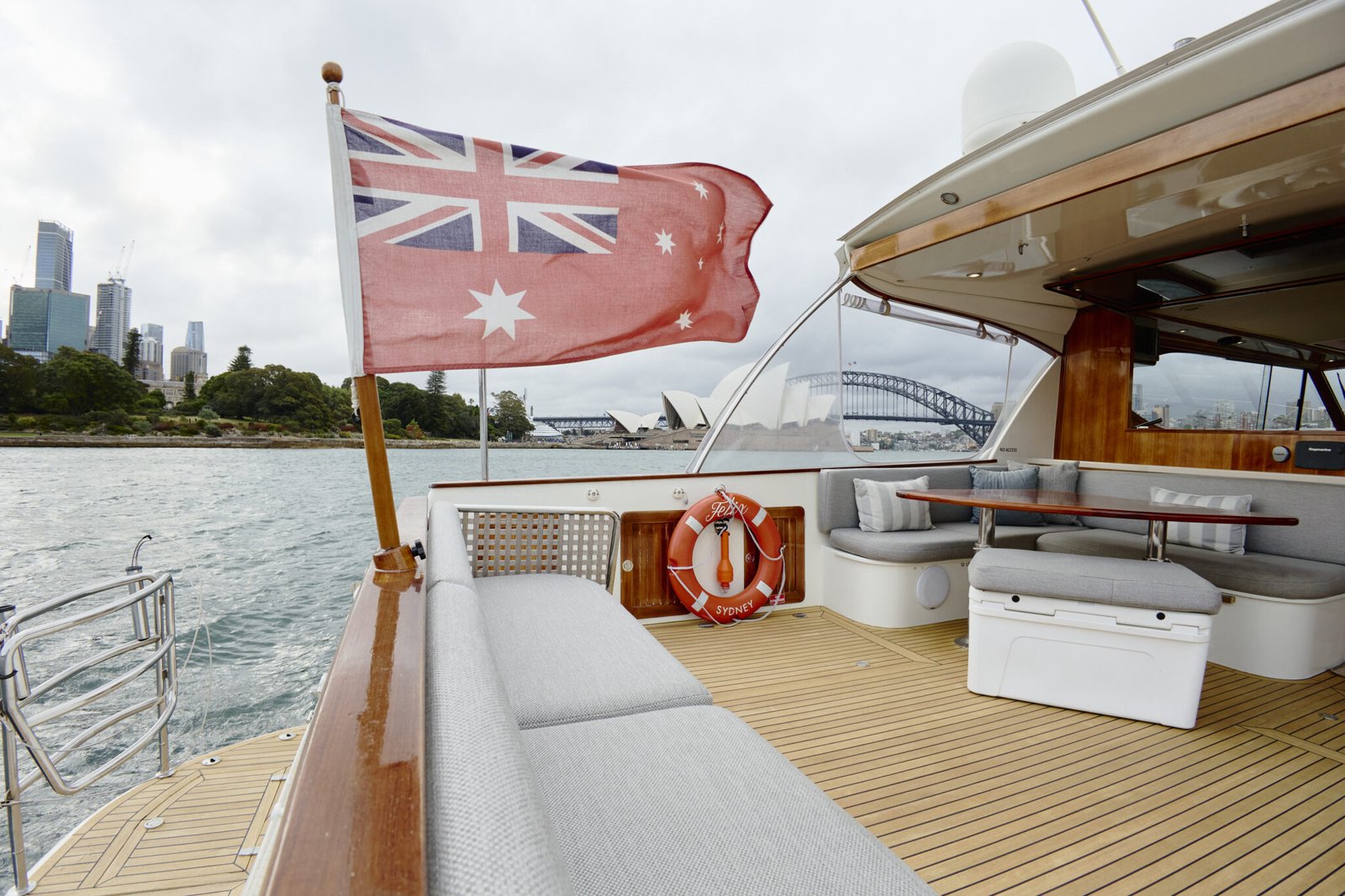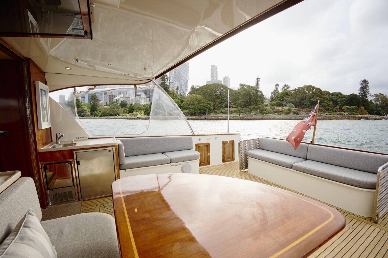 Experience a luxury private cruise Sydney aboard MV Felix - a beautifully presented, luxury 58-foot Salthouse sports cruiser, perfect for luxury group charters. With a comfortable capacity for up to 25 guests, it is the ideal luxury yacht for your next social or corporate event. If you are cruising with a bigger group, please enquire. You’ll thoroughly enjoy MV Felix’s fresh interior refit (completed in 2021), expansive indoor/outdoor open plan entertainment area, two cabins, two bathrooms, swim platform with aqua lily pad and stand-up paddle boards, fully stocked central galley and bar, and multi-zoned WIFI and Bluetooth-compatible sound system.